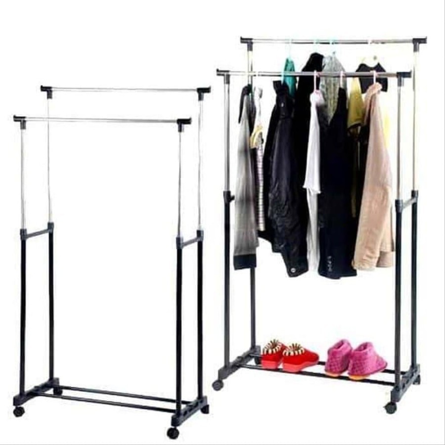 Одлично решение за домашна употреба, овој двоен сталак е идеален и за мали бизниси, бутици или салони за облека. Со својата компактна големина, овој сталак е практичен и лесен за преместување, што ви овозможува да го користите во различни простории или да го пренесете на друго место.