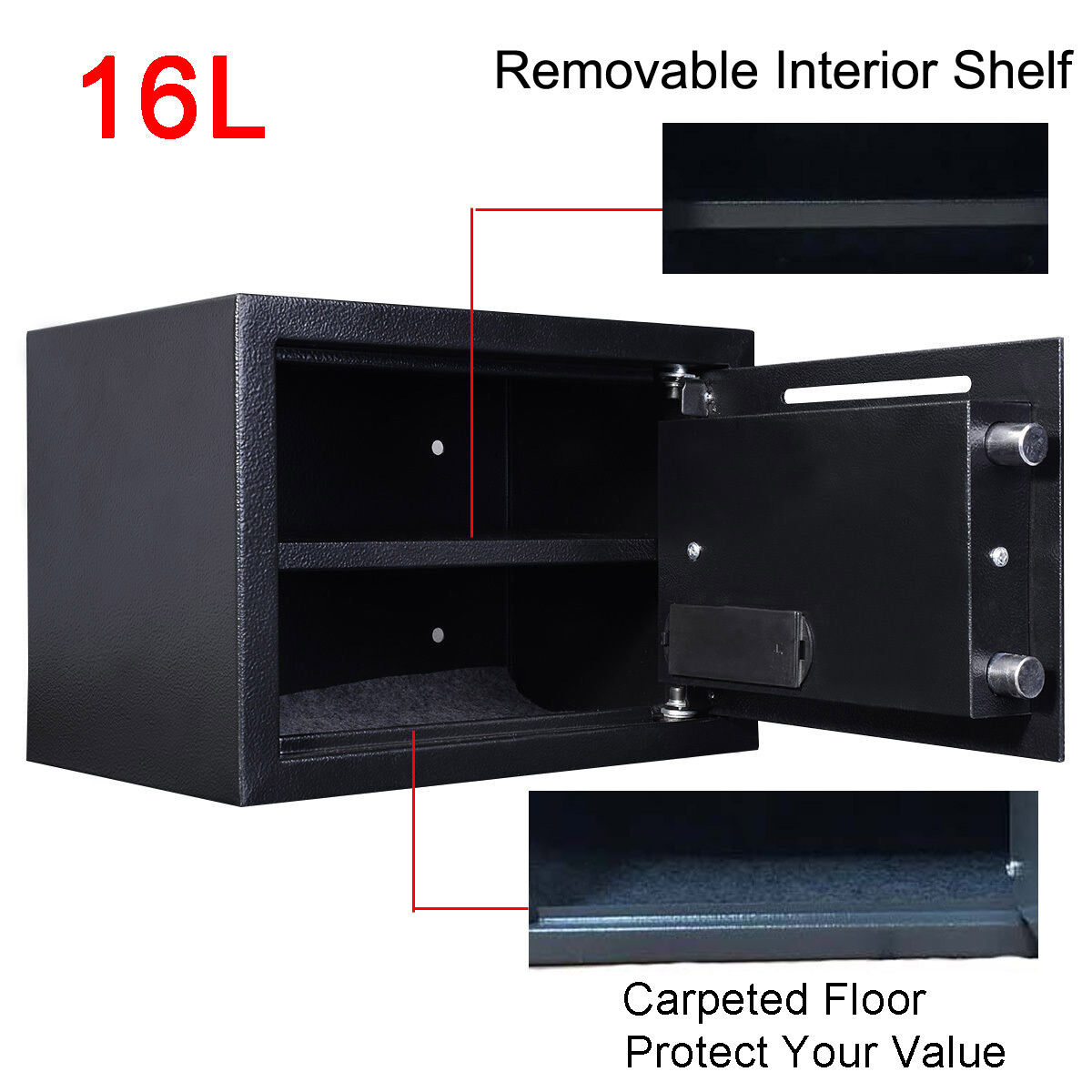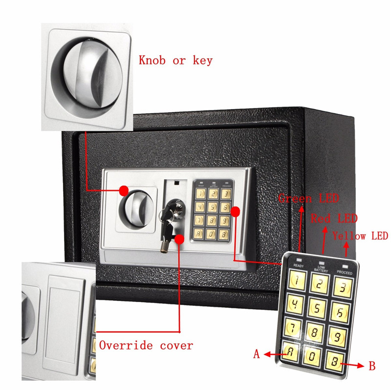 Основната карактеристика на овој дигитален безбедносен сеф е неговата висока сигурност. Сефот е опремен со електронска брава, која овозможува само вие да го отклучите со вашата лозинка или со помош на клуч (скриена брава). Ова значи дека само вие имате пристап до содржината на сефот, што го прави идеален за чување на важни документи, пари, накит и други вредности. Исто така, сефот е изработен од висококвалитетен челик, што го прави отпорен на физички пробивања и пристап на непожелни лица.