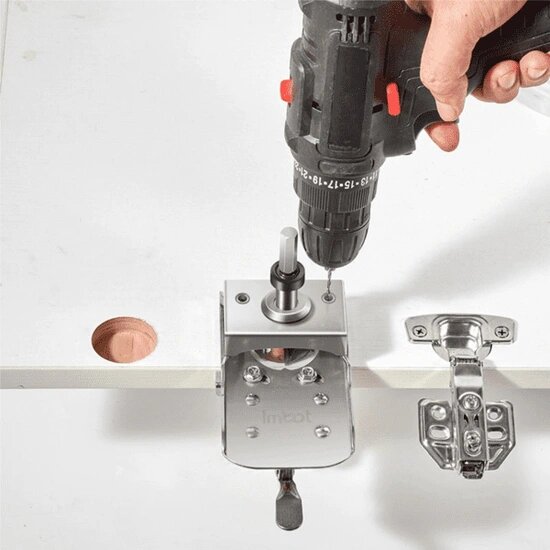 - Дупчалка-додаток за бормашина која овозможува брзо и ефикасно оформување на дупки за шарки, дури и за корисници аматери
