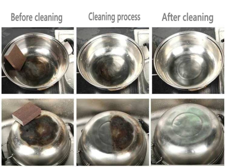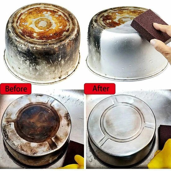 - Магичен сунѓер кој брзо ги отстранува тврдокорните дамки и нечистотијата од садовите за готвење