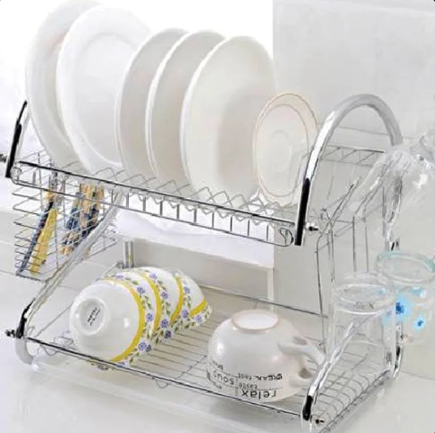 Со двата слоја, оваа полица обезбедува повеќе простор за сушење чинии, чаши, прибор за јадење и други садови.