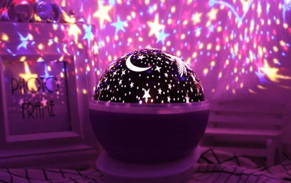 - Ноќна лампа која проектира ѕвездено небо на ѕидовите, прозорците и таванот