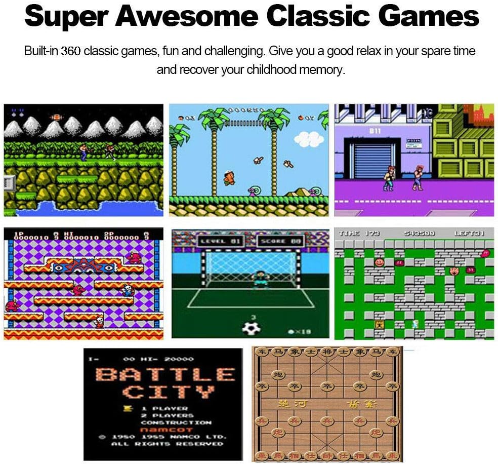 Оваа ретро конзола е опремена со широк спектар од класични аркадни игри, вклучувајќи ги најпопуларните и најомилени игри од 80-тите и 90-тите години. Со повеќе од 500 вградени игри, оваа конзола ќе ви овозможи да се насладите на безброј часови на забава и предизвици.