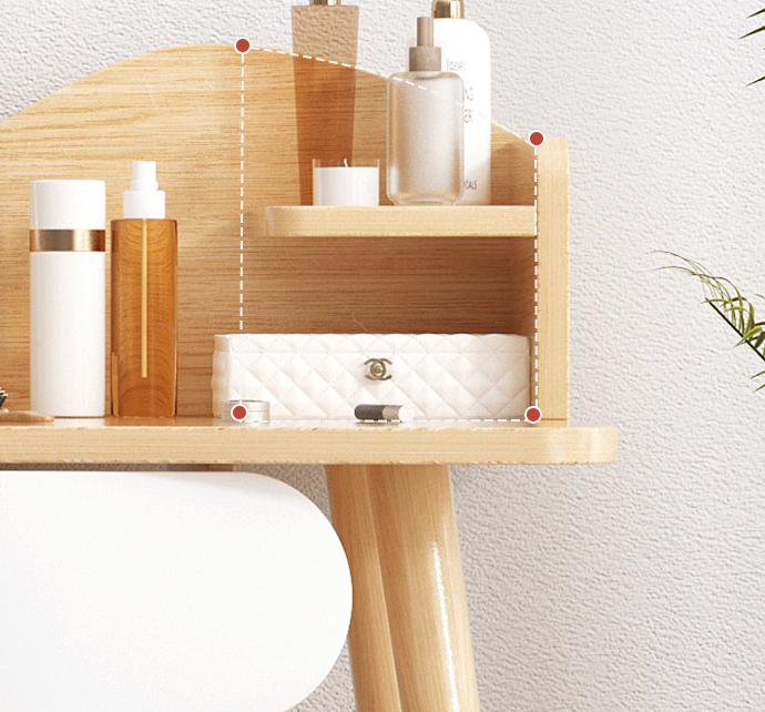 Оваа тоалетна маса со огледало не само што е функционална, туку и додава вредност на вашата соба. Со својот модерен и стилен дизајн, оваа маса ќе го подобри визуелниот аспект на вашата соба и ќе создаде удобна и пријатна атмосфера. Додека се подготвувате за денот или ноќта, ќе се чувствувате прекрасно во својата нова тоалетна маса со огледало.