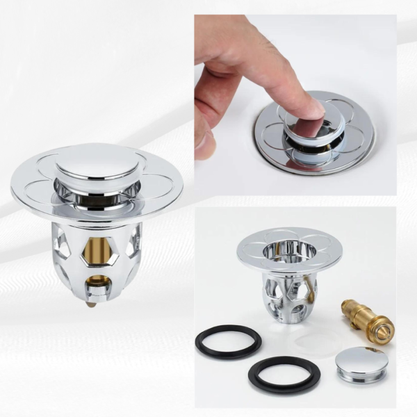Со двојната функција на чеп и сифон, лесно можете да ја задржите водата во мијалникот или да ја испуштите со едно притискање на копчето. Елегантниот дизајн додава допир на луксуз во вашата бања, додека универзалната големина одговара на 99% од мијалниците.
