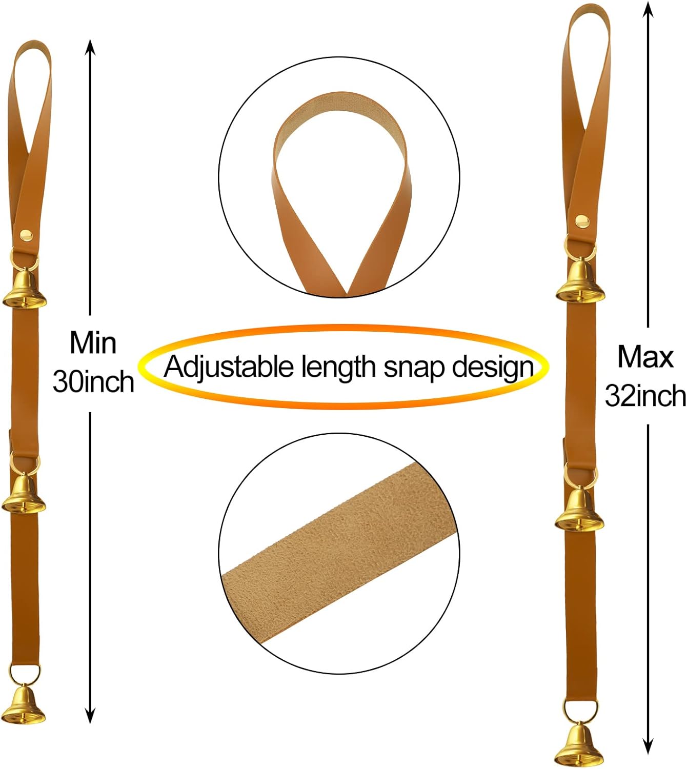 Со прилагодлив ремен, овие ѕвончиња може лесно да се закачат на врата или врата од кабинет и се совршени за штенца кои се учат да излегуваат надвор.