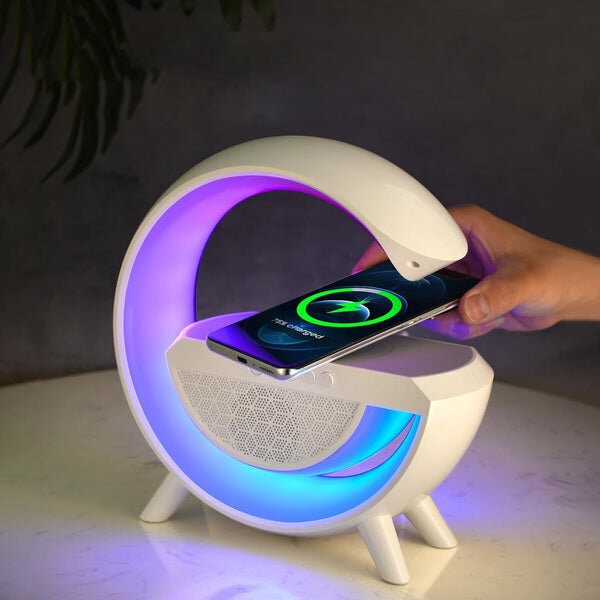 Интелигентен колоритен Bluetooth звучник со безжичен полнач кој нуди повеќекратни предности – од уживање во музика до практично безжично полнење!